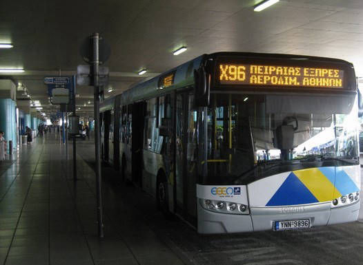 Buss X96 fra flyplassen til Piraeus stanser 300 m. fra leiligheten vår.